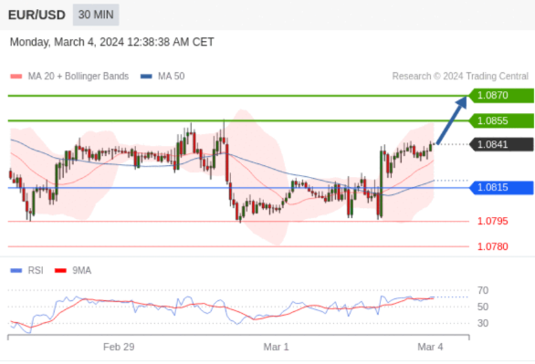 在 1.0815 之上,看涨,目标价位为 1.0855 ,然后为 1.0870 。