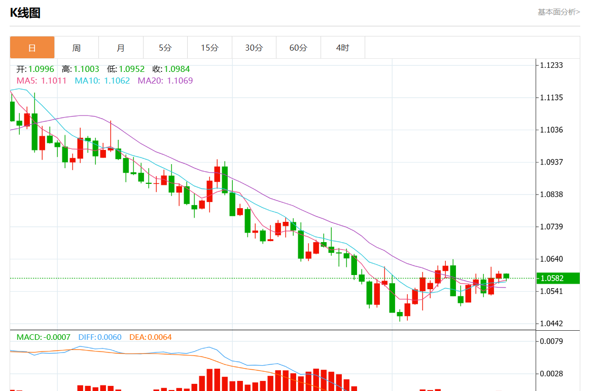 周一欧市盘中,欧元/美元最新报1.0583,日图跌0.11%.