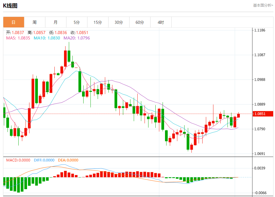 汇价高见1.0858,低见1.0836。上一交易日,汇价收于1.0839。