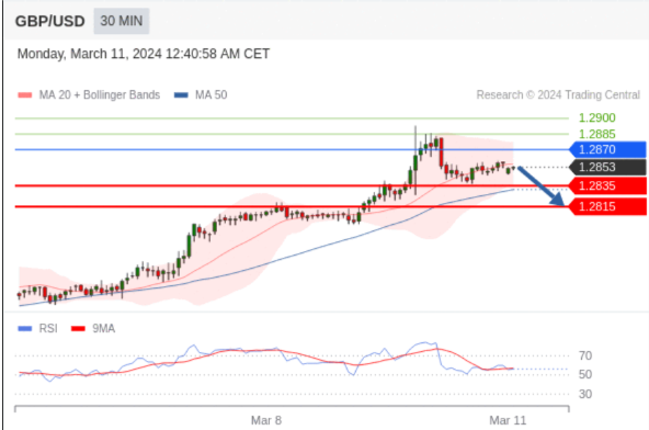 在 1.2870 之下,看跌,目标价位为 1.2835 ,然后为 1.2815 。