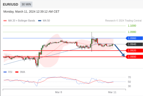 在 1.0960 之下,看跌,目标价位为 1.0920 ,然后为 1.0900 。