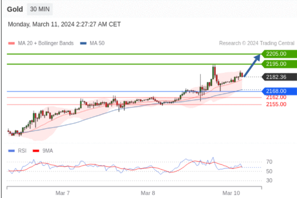 在 2168.00 之上,看涨,目标价位为 2195.00 ,然后为 2205.00 。