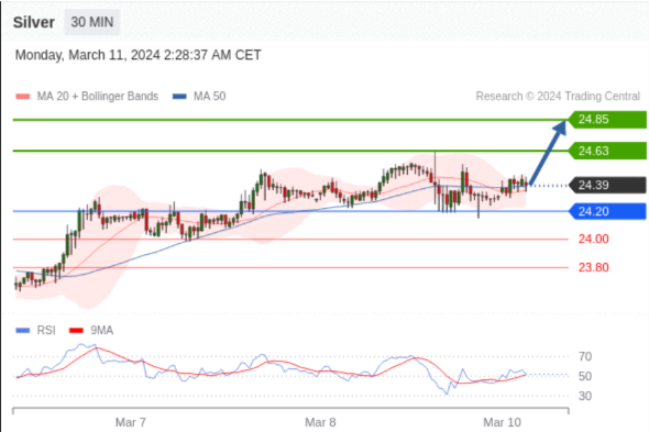 在 24.20 之上,看涨,目标价位为 24.63 ,然后为 24.85 。