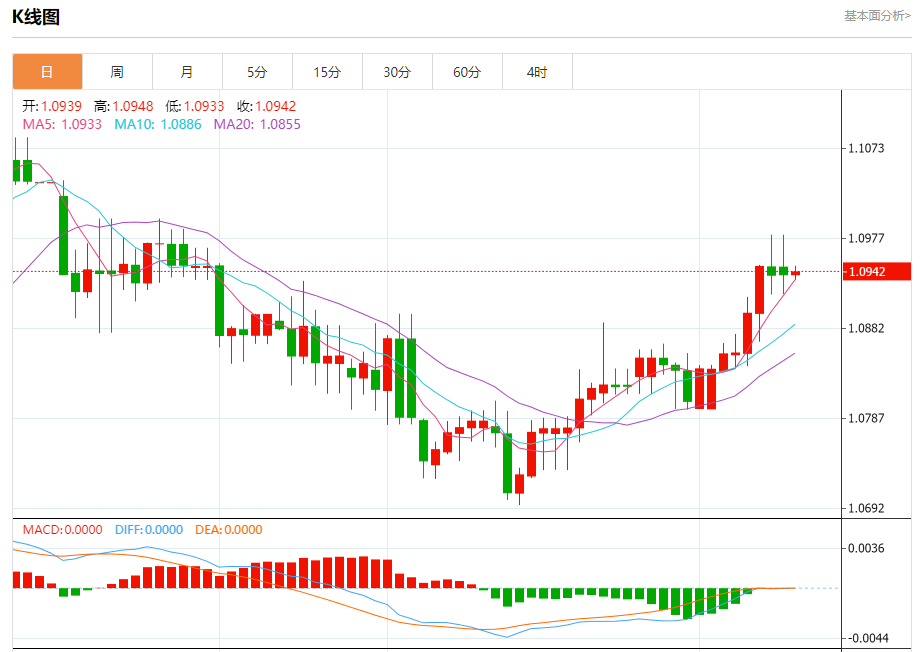 汇价高见1.0948,低见1.0933。上一交易日,汇价收于1.0939。