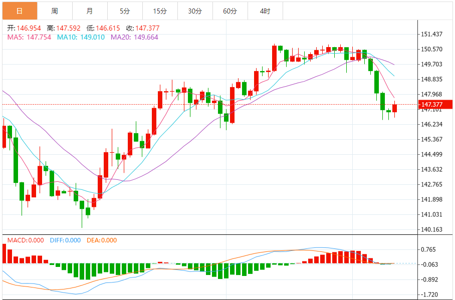 周二(3月12日),美元/日元上涨,暂报147.402,涨幅0.30%。