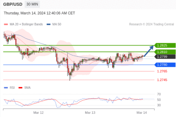 在 1.2780 之上,看涨,目标价位为 1.2810 ,然后为 1.2825 。