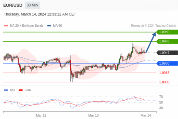 在 1.0930 之上,看涨,目标价位为 1.0965 ,然后为 1.0980 。