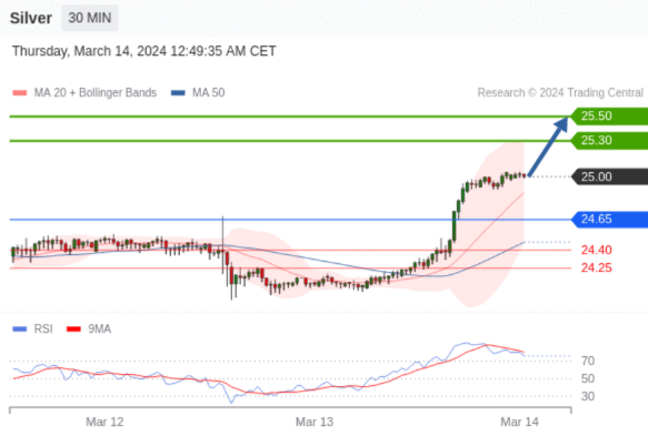 在 24.65 之上,看涨,目标价位为 25.30 ,然后为 25.50 。
