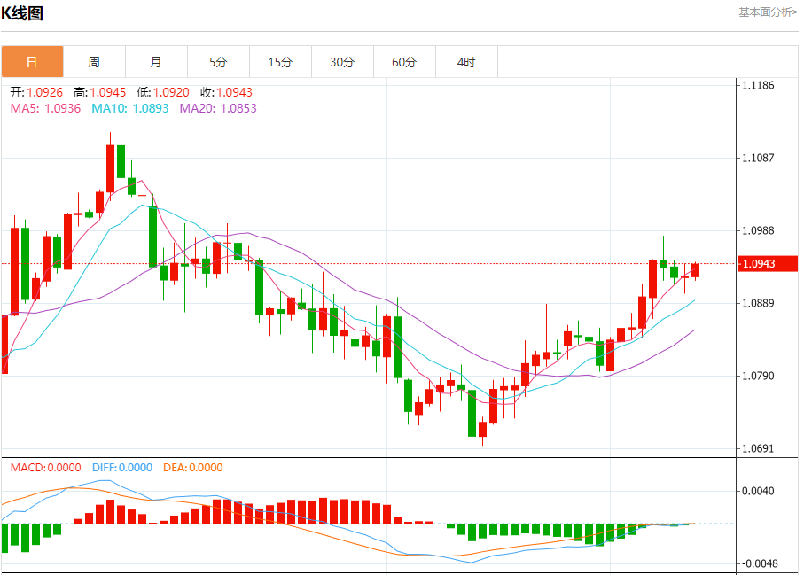 汇价高见1.0945,低见1.0920。上一交易日,汇价收于1.0926。