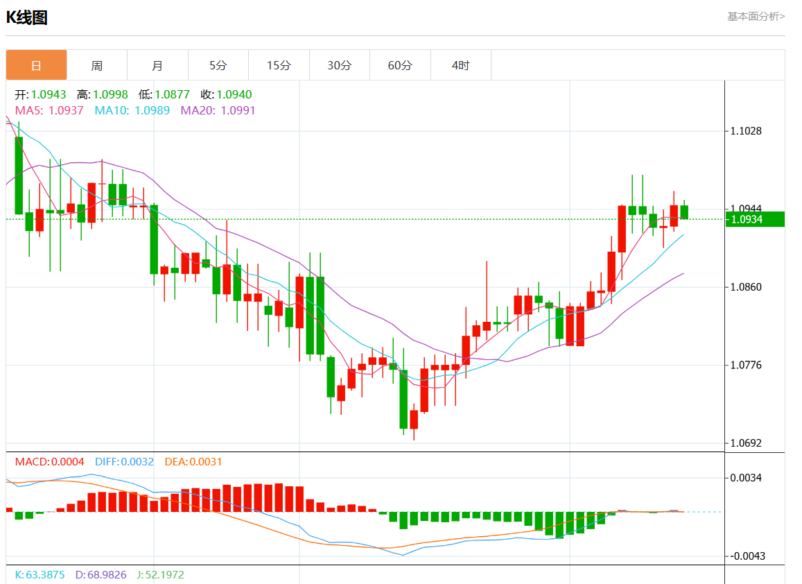 周四欧市盘中,欧元/美元最新报1.0936,日图跌0.11%.