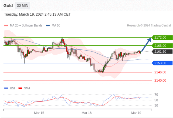 在 2153.00 之上,看涨,目标价位为 2166.00 ,然后为 2172.00 。