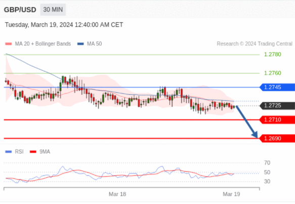 在 1.2745 之下,看跌,目标价位为 1.2710 ,然后为 1.2690 。