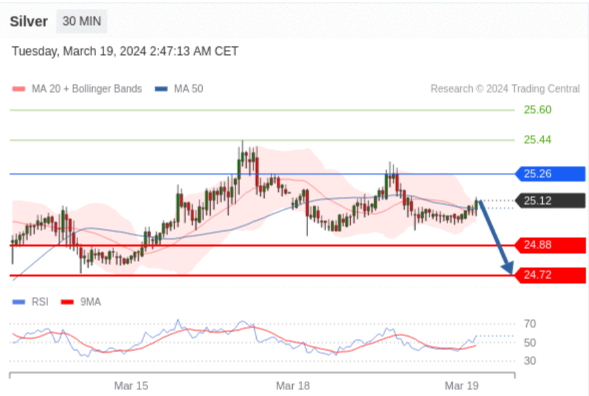 在 25.26 之下,看跌,目标价位为 24.88 ,然后为 24.72 。