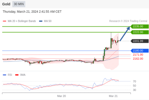 在 2180.00 之上,看涨,目标价位为 2222.00 ,然后为 2235.00 。