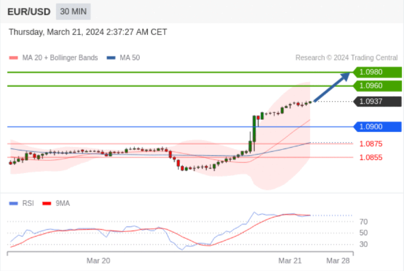 在 1.0900 之上,看涨,目标价位为 1.0960 ,然后为 1.0980 。