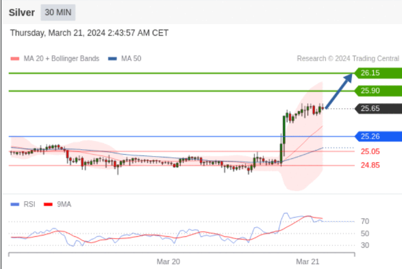 在 25.26 之上,看涨,目标价位为 25.90 ,然后为 26.15 。