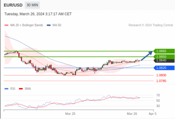 在 1.0820 之上,看涨,目标价位为 1.0850 ,然后为 1.0865 。