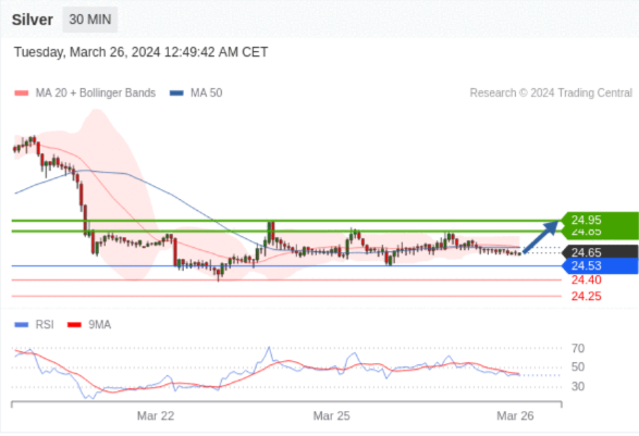 在 24.53 之上,看涨,目标价位为 24.85 ,然后为 24.95 。