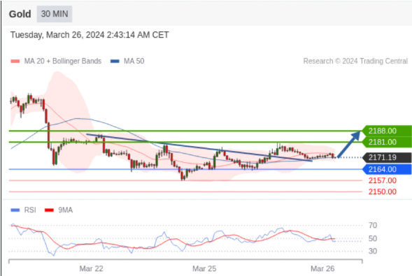 在 2164.00 之上,看涨,目标价位为 2181.00 ,然后为 2188.00 。