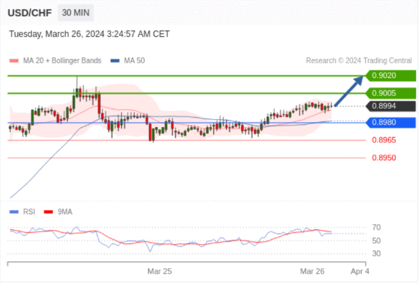 在 0.8980 之上,看涨,目标价位为 0.9005 ,然后为 0.9020 。