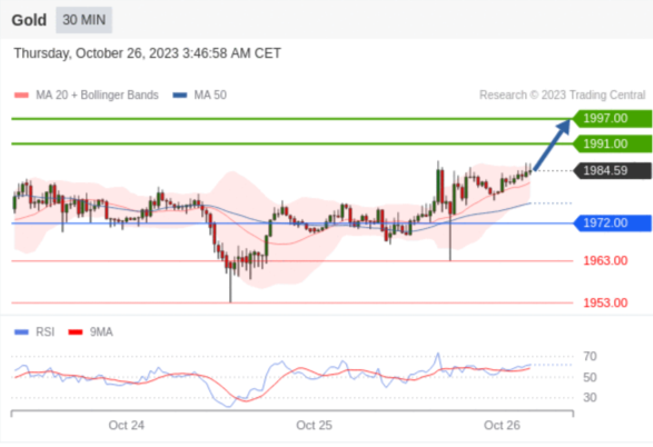 在 1972.00 之上,看涨,目标价位为 1991.00 ,然后为 1997.00 。