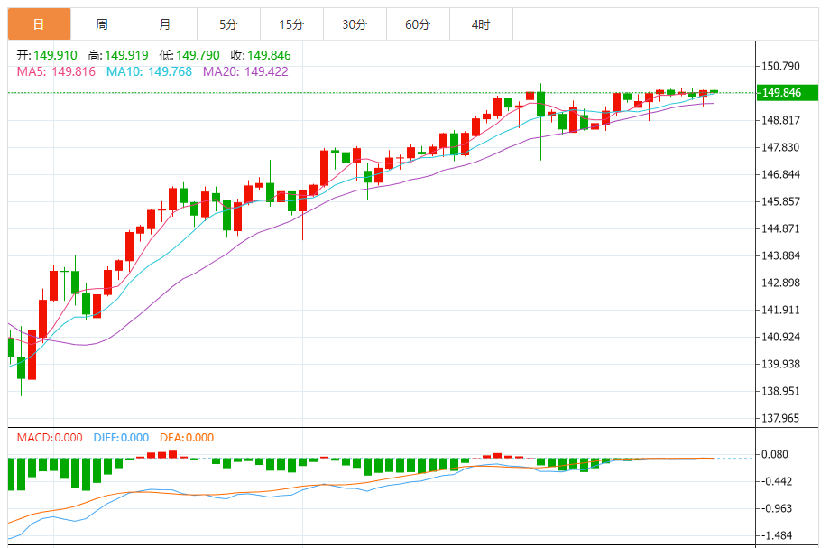 周三(10月25日),美元/日元下跌,暂报149.854,跌幅0.04%。