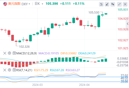 追踪美元兑六种主要货币的ICE美元指数周四微升0.1%,报105.29。受强劲的美国CPI数据刺激,ICE美元指数周三大涨1.05%,单日涨幅为去年3月以来最大。