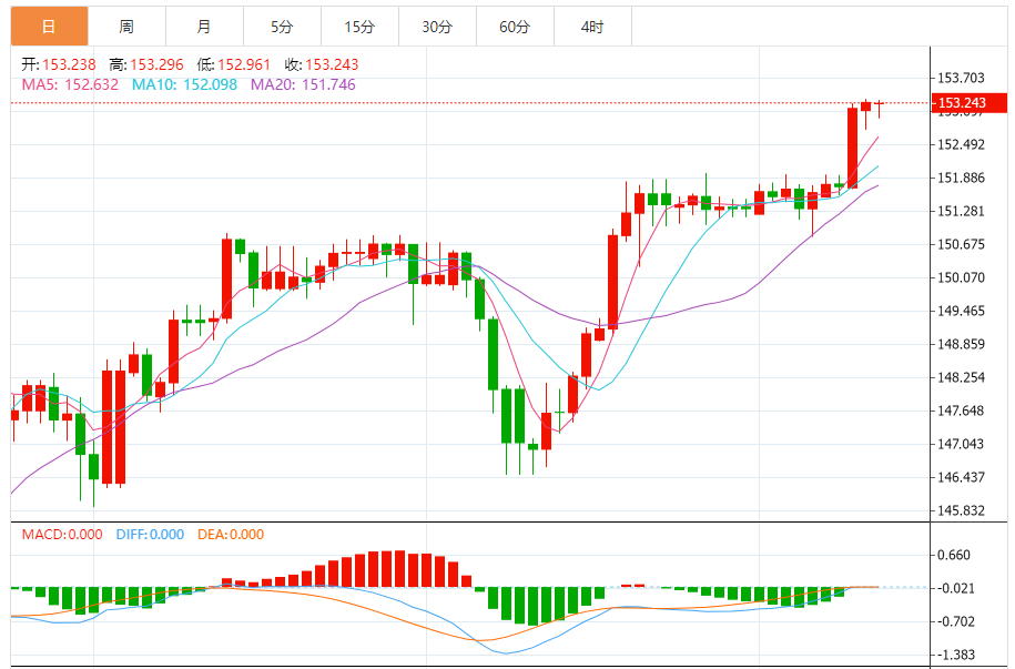 阻力位:153.27 153.33 153.40