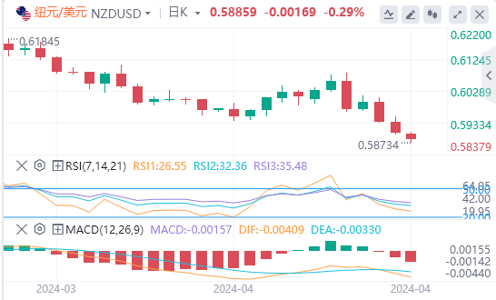 纽元/美元未能从好坏参半的中国数据中得到任何回应,因为新西兰与中国两国贸易关系密切。2024年第一季度,中国国内生产总值季率1.6%,上一季度为增长1.0%。国内生产总值年率5.3%,超出预期的5.0%和前值5.2%。同时,中国3月份工业生产年率增长4.5%,市场预期为5.4%,前值为7.0%。