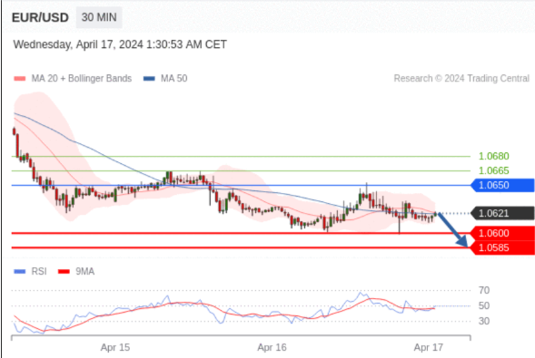 在 1.0650 之下,看跌,目标价位为 1.0600 ,然后为 1.0585 。