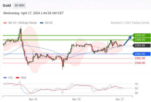 在 2363.00 之上,看涨,目标价位为 2398.00 ,然后为 2409.00 。