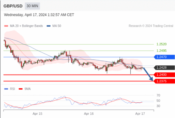在 1.2470 之下,看跌,目标价位为 1.2400 ,然后为 1.2375 。