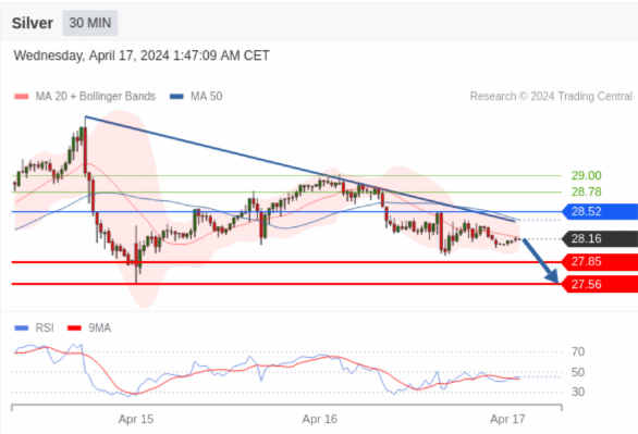 在 28.52 之下,看跌,目标价位为 27.85 ,然后为 27.56 。
