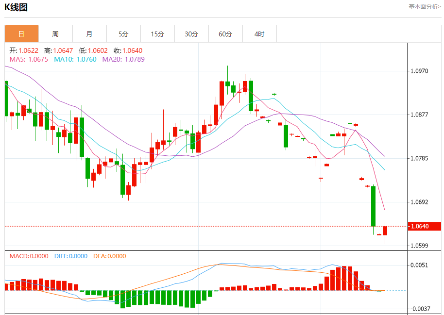 汇价高见1.0647,低见1.0602。上一交易日,汇价收于1.0624。