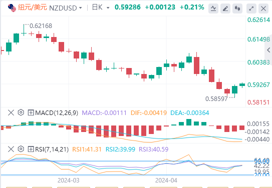 周三,报告显示,新西兰消费者价格指数(CPI)已触及近3年低点,第一季度同比增长4%。这种情况为新西兰储备银行(RBNZ)提供了更大的灵活性来考虑降息。尽管承认特定行业通胀持续存在,但新西兰联储在上周的政策会议上选择将利率维持在5.5%。