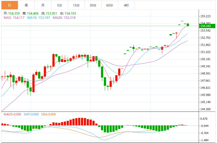 周四(4月18日),美元/日元下跌,暂报154.234,跌幅0.10%。