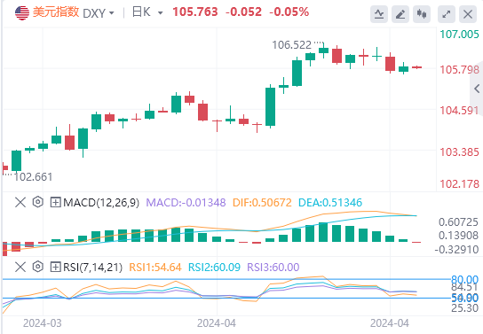 美元指数看起来稳定在106.5-105.5区间内。美元/日元已经突破155,如果持续下去,中期可能会继续升向158。