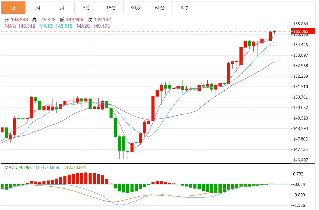 技术分析:美元/日元可能在下一站上涨至156.00关口之前盘整