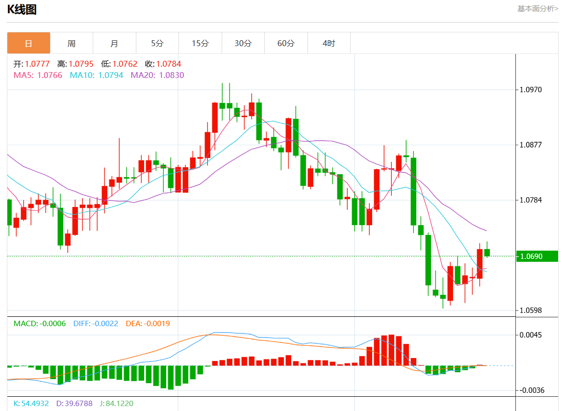 周三欧市盘中,欧元/美元最新报1.0688,日图跌0.12%.