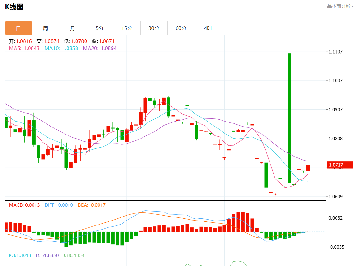 周四欧市盘中,欧元/美元最新报1.0716,日图涨0.17%.