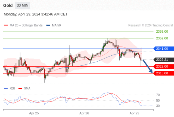 【XM交易平台】2024年4月29日亚盘交易建议:黄金、白银、欧元、英镑、日元、瑞郎交易点位技术分析及预测