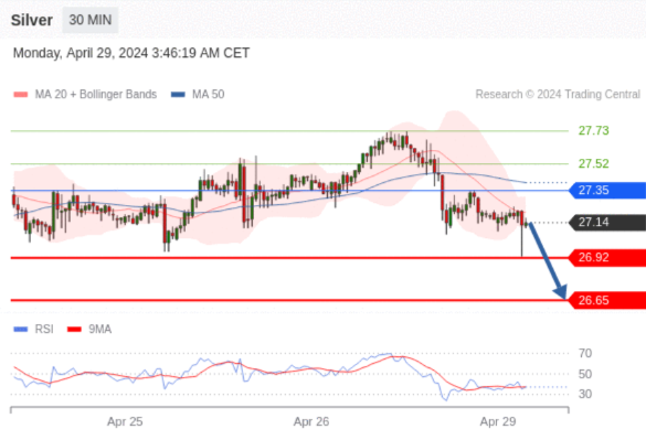 在 27.35 之下,看跌,目标价位为 26.92 ,然后为 26.65 。