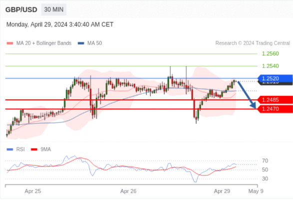 在 1.2520 之下,看跌,目标价位为 1.2485 ,然后为 1.2470 。