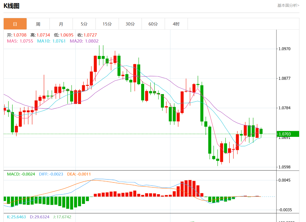 周二欧市盘中,欧元/美元最新报1.0703,日图跌0.17%.