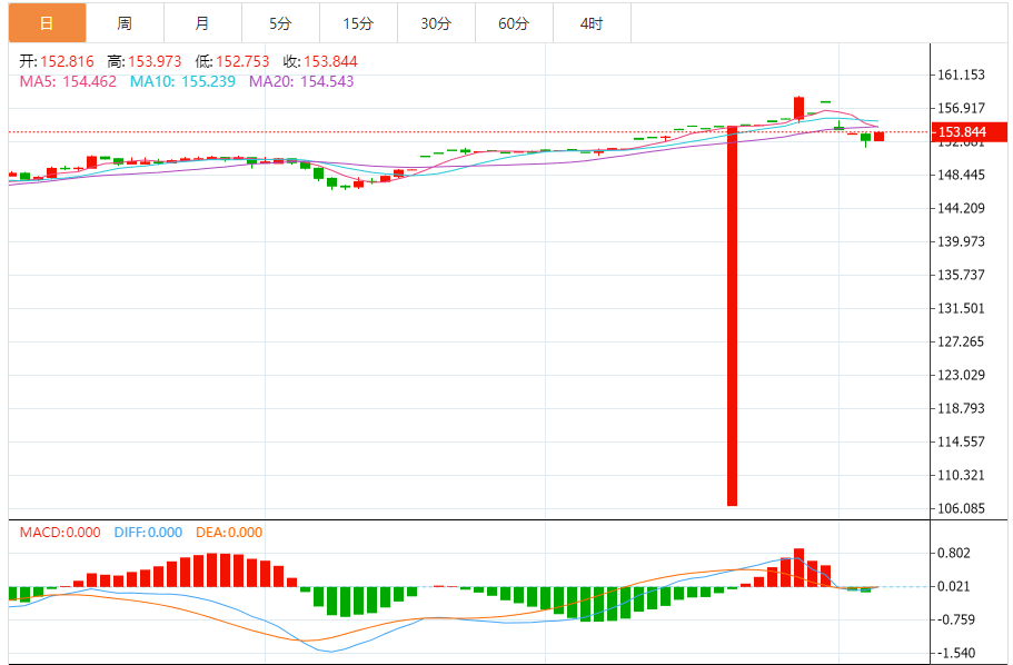 支撑位:153.78 153.83 153.88