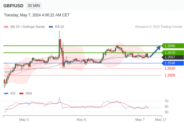 在 1.2540 之上,看涨,目标价位为 1.2570 ,然后为 1.2590 。