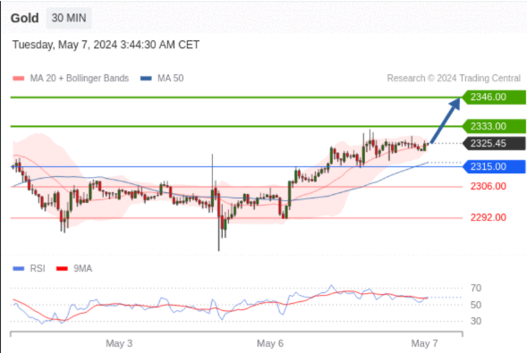 【XM交易平台】2024年5月7日亚盘交易建议:黄金、白银、欧元、英镑、日元、瑞郎交易点位技术分析及预测