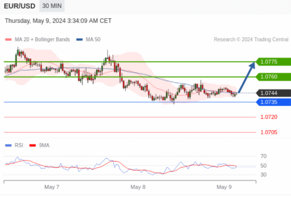 在 1.0735 之上,看涨,目标价位为 1.0760 ,然后为 1.0775 。