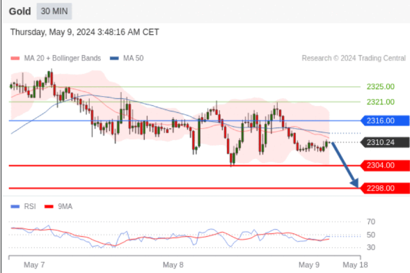 【XM交易平台】2024年5月9日亚盘交易建议:黄金、白银、欧元、英镑、日元、瑞郎交易点位技术分析及预测