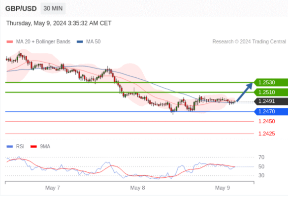 在 1.2470 之上,看涨,目标价位为 1.2510 ,然后为 1.2530 。